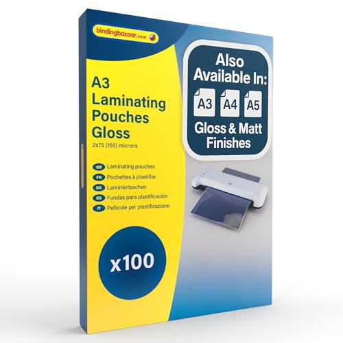 Binding Bazaar A3 Laminating Pouches, Gloss Finish, 150 Micron, 100 Laminating Sheets - Laminating Pouches to Enhance Your Words and Colours - Compatible with All Laminating Machines