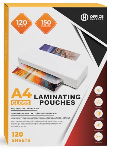 A4 Laminating Pouches – 120 Sheets | 150 Micron | Gloss Finish | Waterproof, Durable, Trimmable, Wipeable | 3mm Border for Easy Sealing | Ideal for Documents, Photos, Certificates