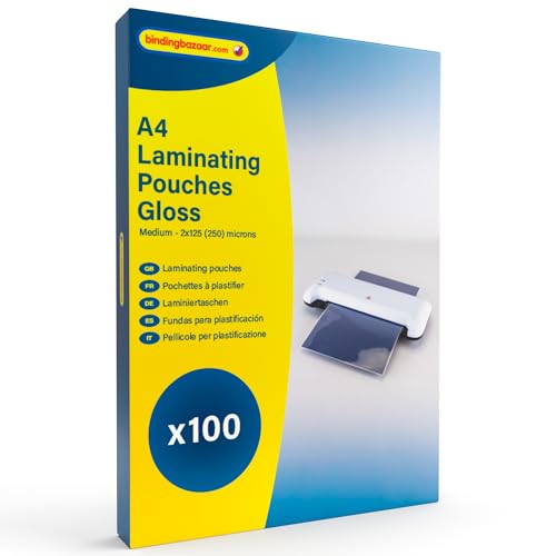 Binding Bazaar Extra Thick A4 Laminating Pouches, Gloss Finish, 250 Micron, 100 Laminating Sheets - Laminating Pouches to Enhance Your Words and Colours - Compatible with All Laminating Machines