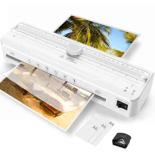 Laminator, A4 Laminating Thermal Laminating Machine with Built-in Cutter and Corner Rounder, Fast Warm-Up and High-Speed Lamination, Laminator for Home Office School Use
