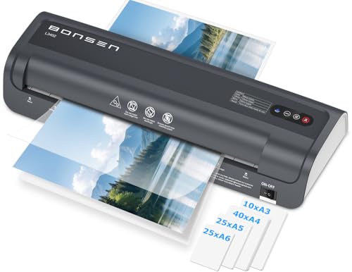 BONSEN A4 Laminator Machine with 60 Laminating Pouches, Never Jam Technolagy, 270mm/min Quick Lamination for Office, Home, School Crafts, Menu, L3401