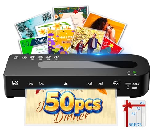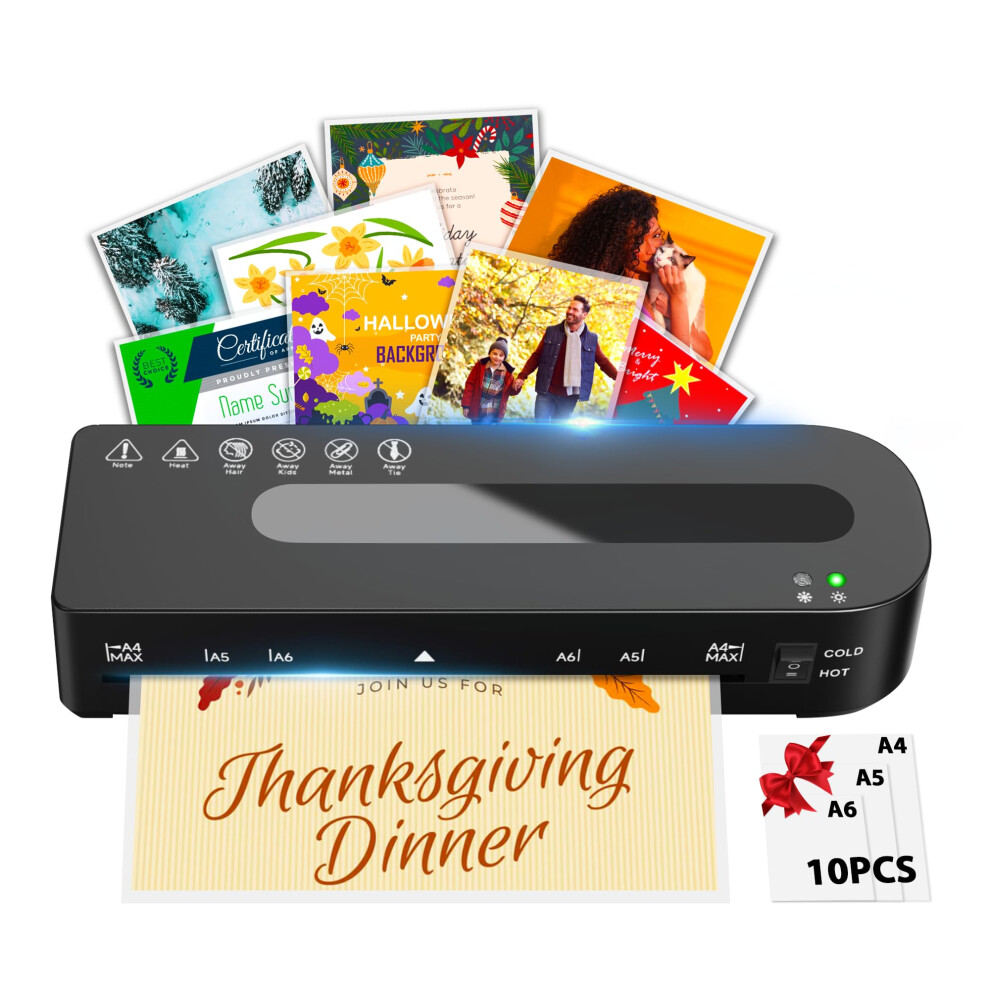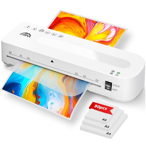 A4 Laminator Machine, Thermal Laminator with 9 Laminating Pouches for Hot and Cold Settings, ABS Jam Release and No Bubbles for A4 A5 A6 A7, School Office Home Use