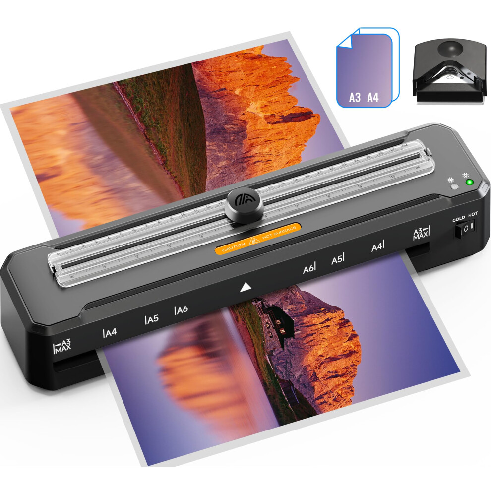 Laminator A3 with Paper Cutter + Sheets + Scale Line, ABS Anti-Jam Technology | Dual Hot and Cold Mode| 90s Preheat for A3 A4 A5 A6, Laminator Machine for Home Office School