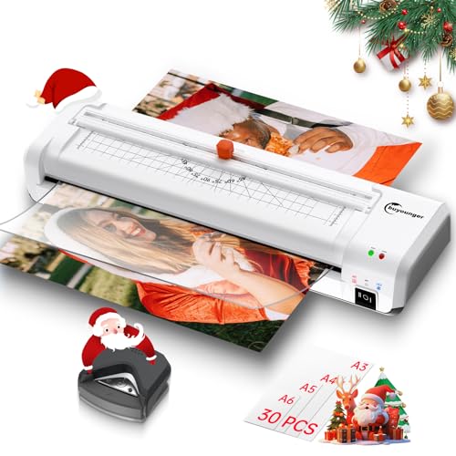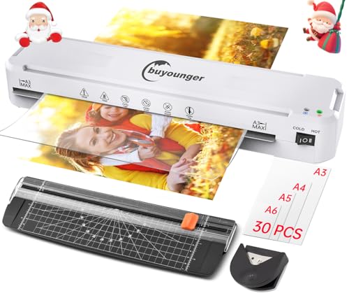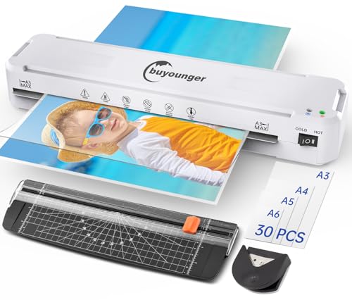 Buyounger A3 Laminator with 30 Laminating Pouches - Fast 60s Warm Up & 355mm/min Lamination, All-in-1 Laminator Machine with Never Jam Technolagy, Support A3/A4/A5/A6, Perfect for Office Home School