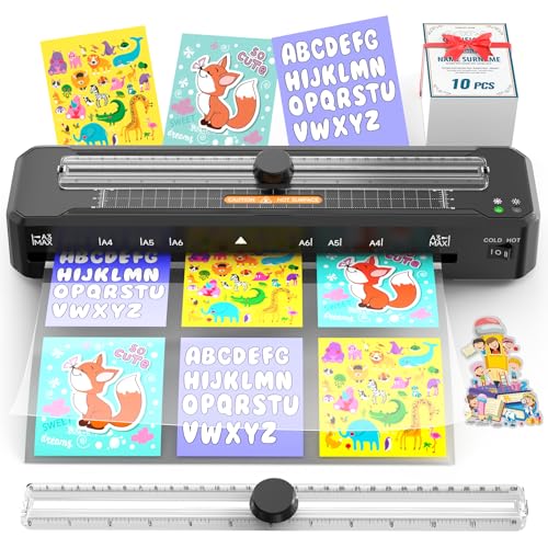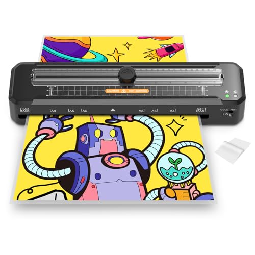 A4 Laminator Machine Built-in Cutter with 10 Laminating Pouches and Corner Rounder, Fast Warm-up, Hot & Cold Laminator Kit for Home, Office & School Use