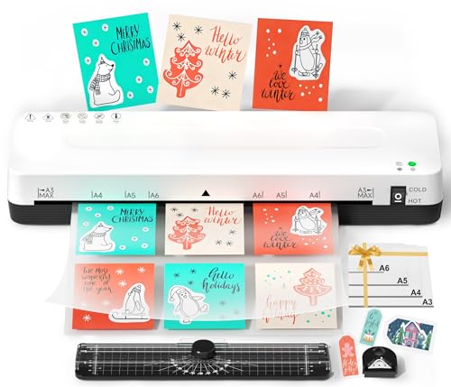 A3 Laminator Machine Laminating Machine - Cold and Thermal Laminator with Laminating Sheets for A3/A4/A5/A6, 5-in-1 Lamination Machine with Paper Trimmer and Corner Rounder for Home Office School