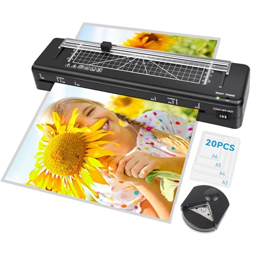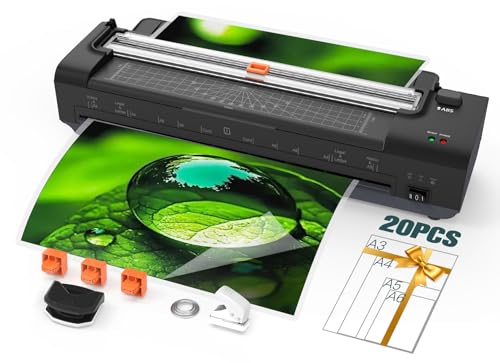 Laminator, A3 Laminator Machine, Thermal Laminating 70s Fast Warm-up, Portable Personal Laminating Machine for Home/Office/School (LAM00006-A3+20pics)