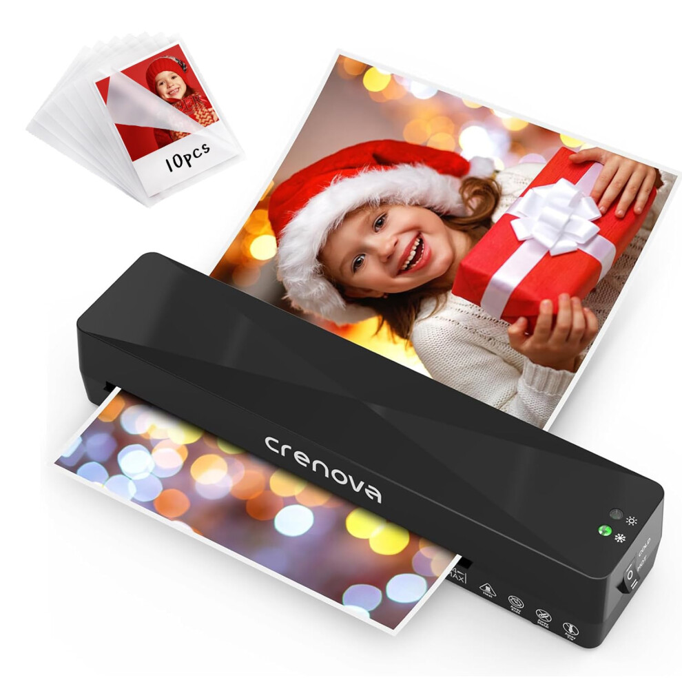 Crenova A4 Laminator, Thermal Laminator Machine for Hot and Cold Settings with 10 Laminating Pouches No Bubbles for School Home Use (Black)