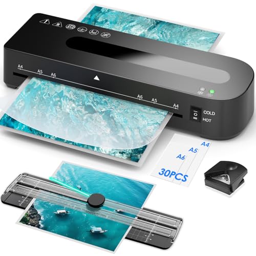 Laminator, Portable A4 Thermal Laminating Machine with Hot and Cold Settings, Quick Warm-up and No Bubbles with 30 Laminator Pouches, 1 Corner Rounder,1 Paper Cutter, for School/ Home/ Offices