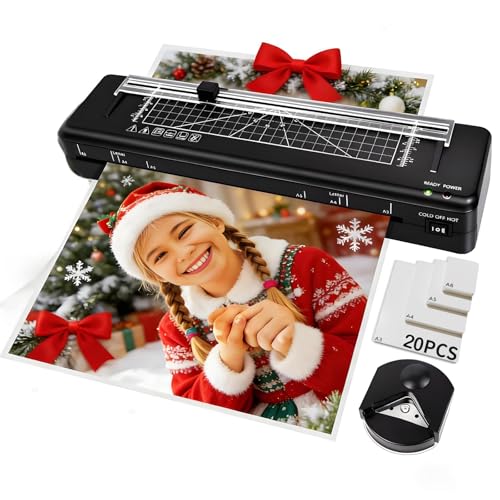 A3 Laminator Machine with 20 Laminating Sheets, Multi Function Laminator with Paper Trimmer Corner Rounder for Office School Business Home Use, Black