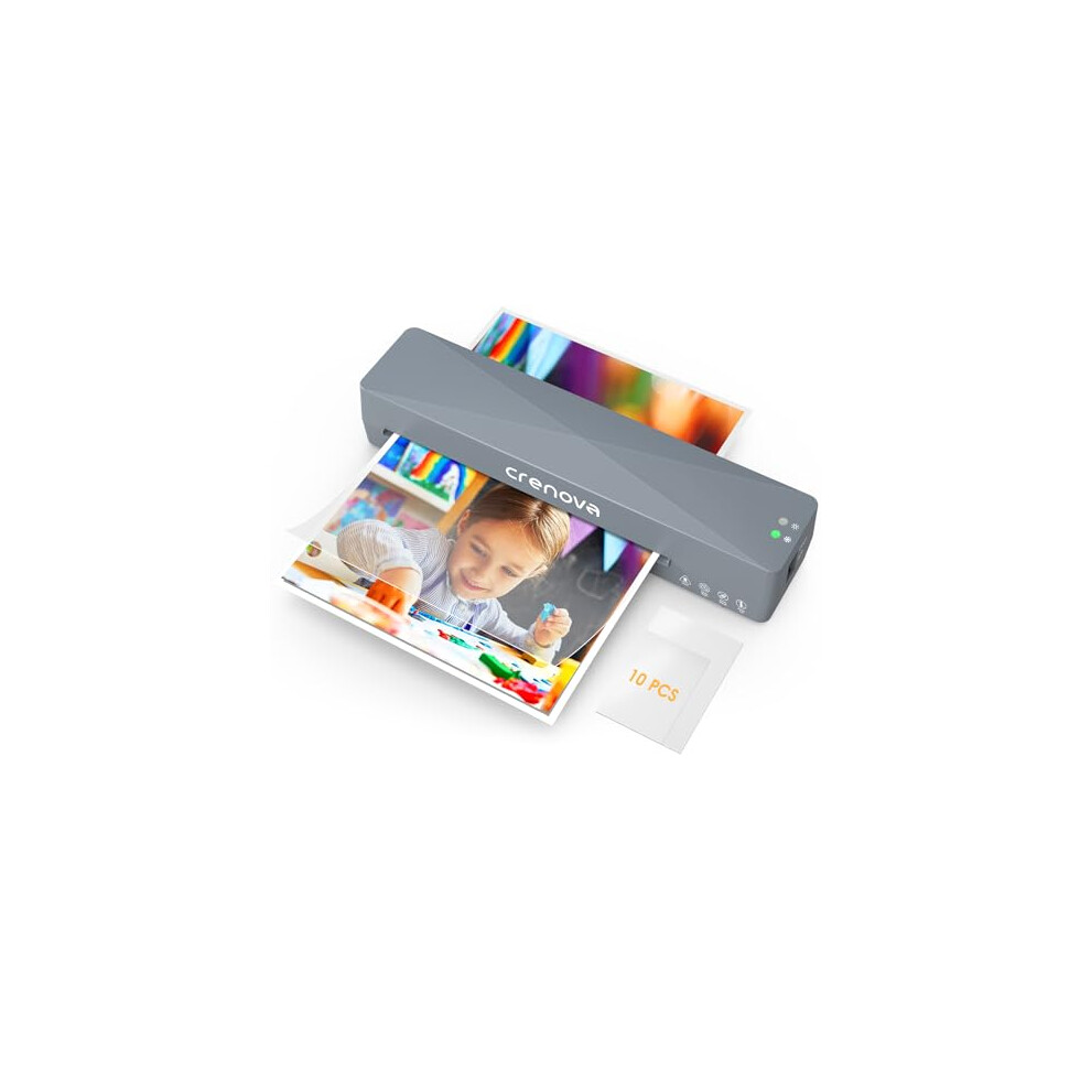 Crenova A4 Laminator, Thermal Laminator Machine for Hot and Cold Settings with 10 Laminating Pouches No Bubbles for School Home Use (Gray)