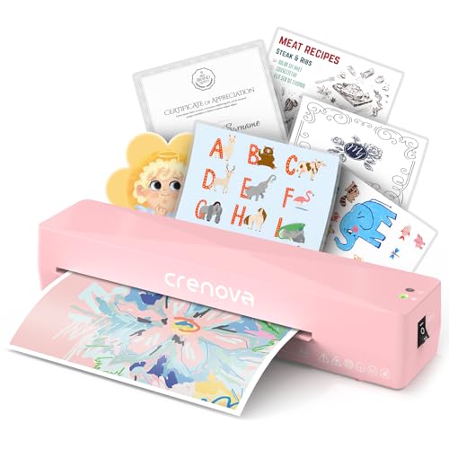 Crenova A4 Laminator, Thermal Laminator Machine for Hot and Cold Settings with 10 Laminating Pouches No Bubbles for School Home Use (Pink)