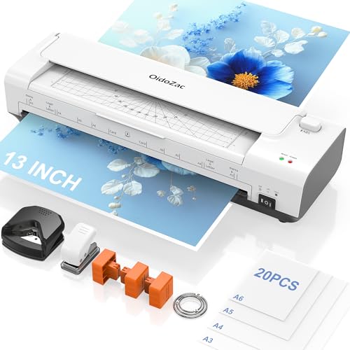 OidoZac A4 Laminator Machine, 11 in 1 Thermal Laminator with 36 Laminating Pouches, Cold Hot Lamination Machine 3 Cutter Heads & Built-in Trimmer for School Home Business Office(White)