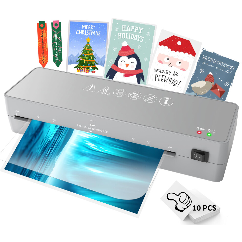 Crenova A4 Laminator, Thermal Laminator Machine for Hot and Cold Settings with 10 Laminating Pouches No Bubbles for School Home Use (Gray)