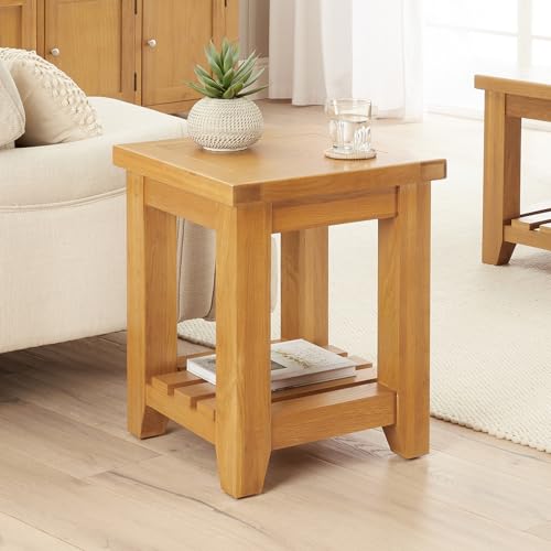 Hallowood Furniture Waverly Oak Lamp Table with Shelf, Solid Wooden Occasional, Small Oak Side Table for Living Room or Bedside, Plant Stand for Small Spaces