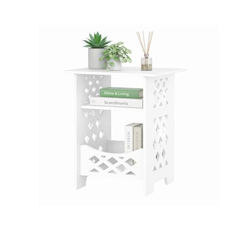 CROWNSHOP Small Side Table Side End Coffee Table Beside lamp Stand Nightstand Storage Shelf for Living Room Bedroom Bathroom Office Hallway White (3-Tier)