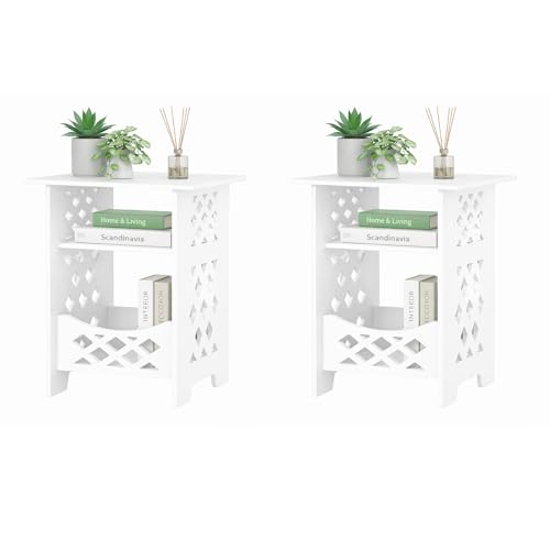 CROWNSHOP Small Side Table Set of 2 Side End Coffee Table Beside lamp Stand Nightstand Storage Shelf for Living Room Bedroom Bathroom Office Hallway White (2pc-3-Tier)
