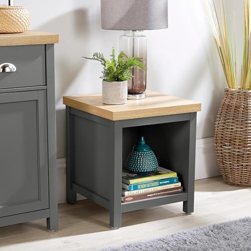 Home Source Occasional End Lamp Table, 1 Shelf, Oak Effect, Dark Grey