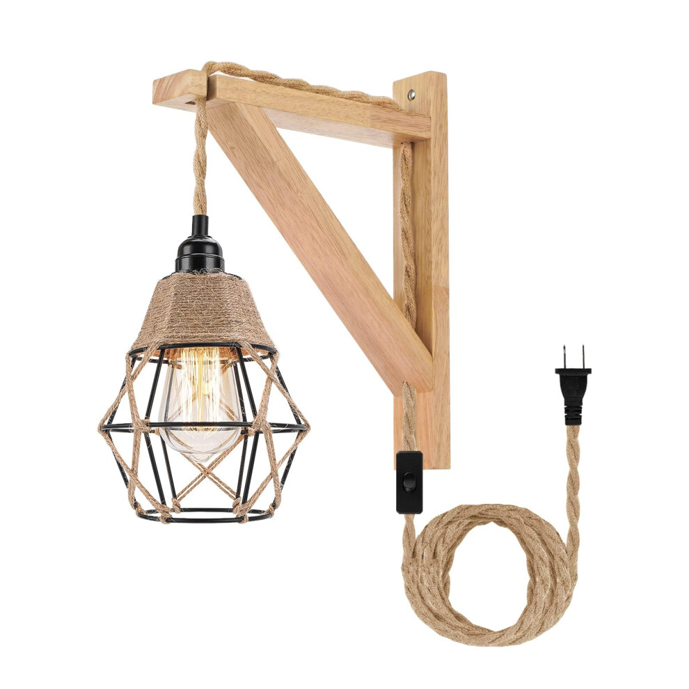 Plug in Wall Sconce Rustic Farmhouse Lamp with Wood Shelf and Switch for Living Room Bedroom Orange