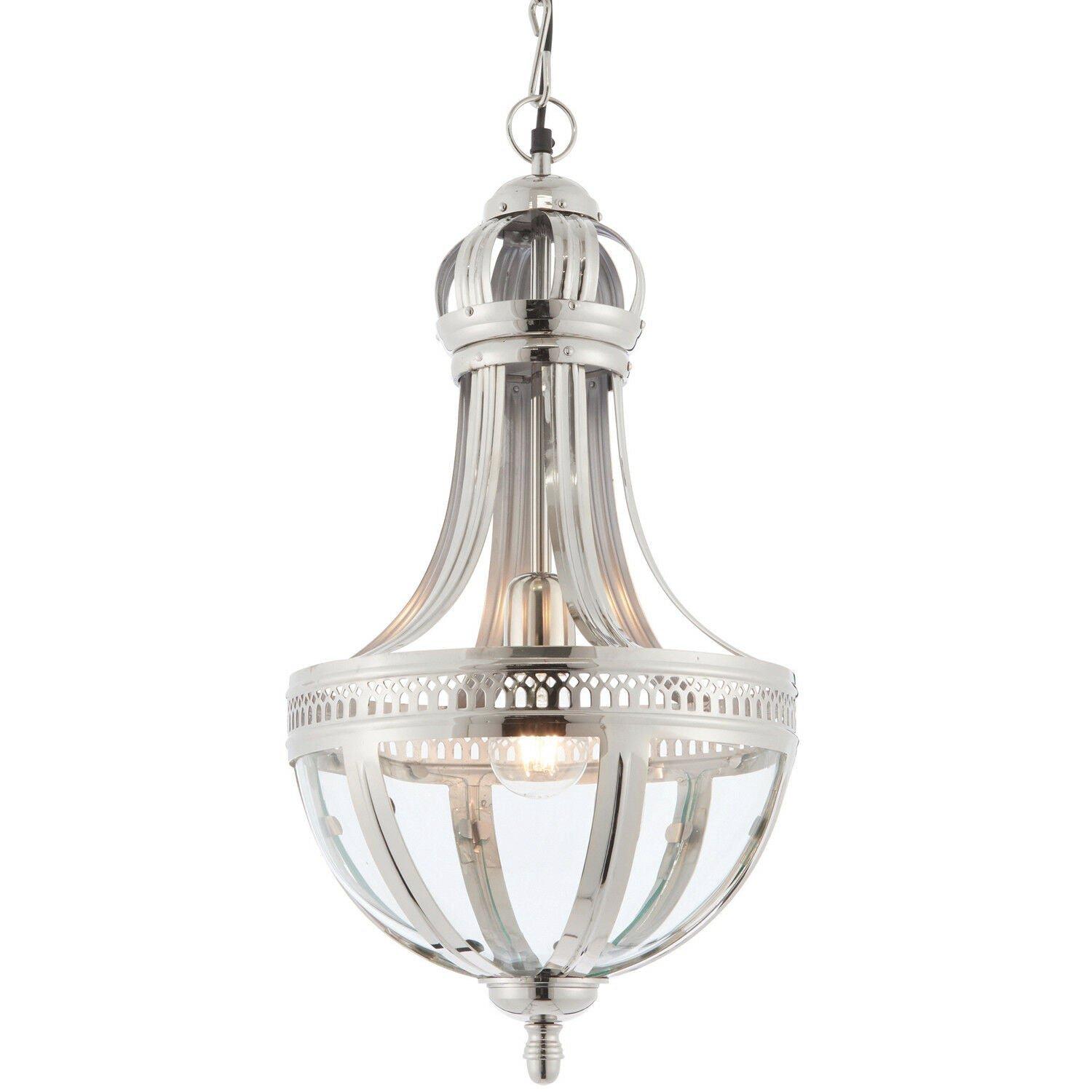 Hanging Ceiling Pendant Light Nickel & Clear Glass Vintage Lamp Bulb Lantern