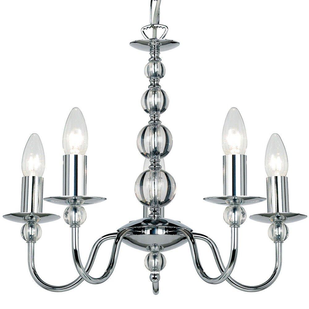 Hanging Flush Ceiling Pendant 5 Light CHROME & GLASS Chandelier Multi Lamp Bulb