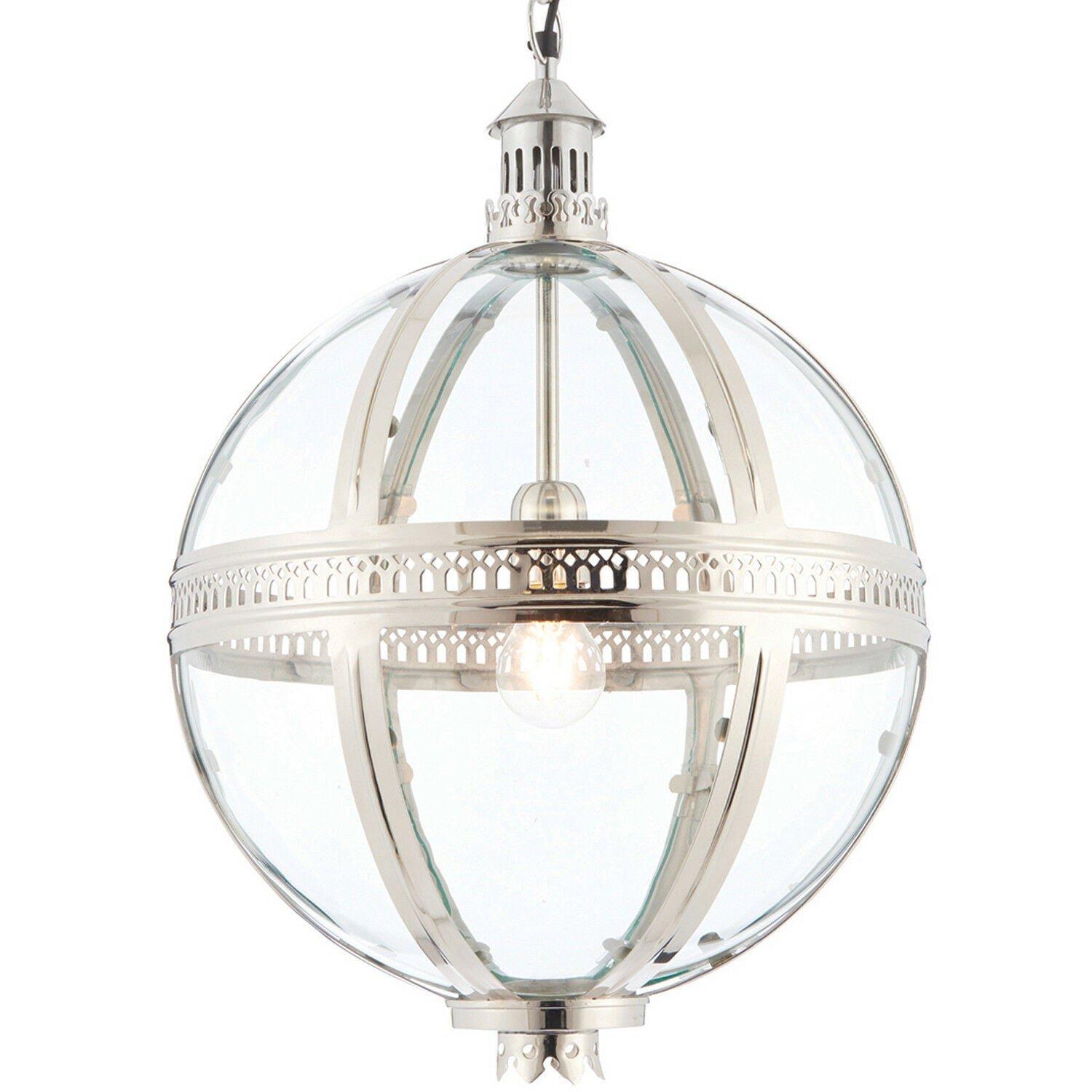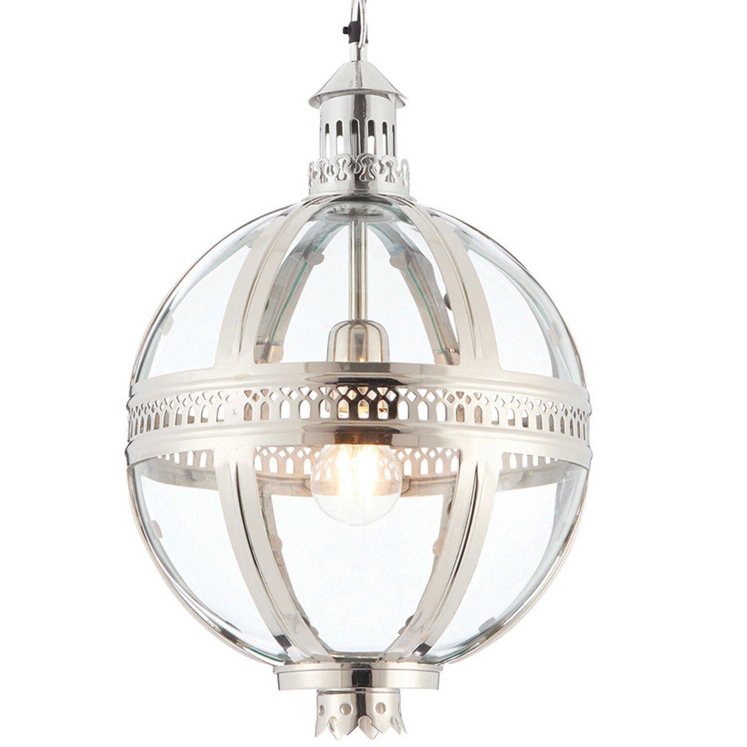 Hanging Ceiling Pendant Light Nickel & Clear Glass Vintage Lamp Bulb Orb Shade