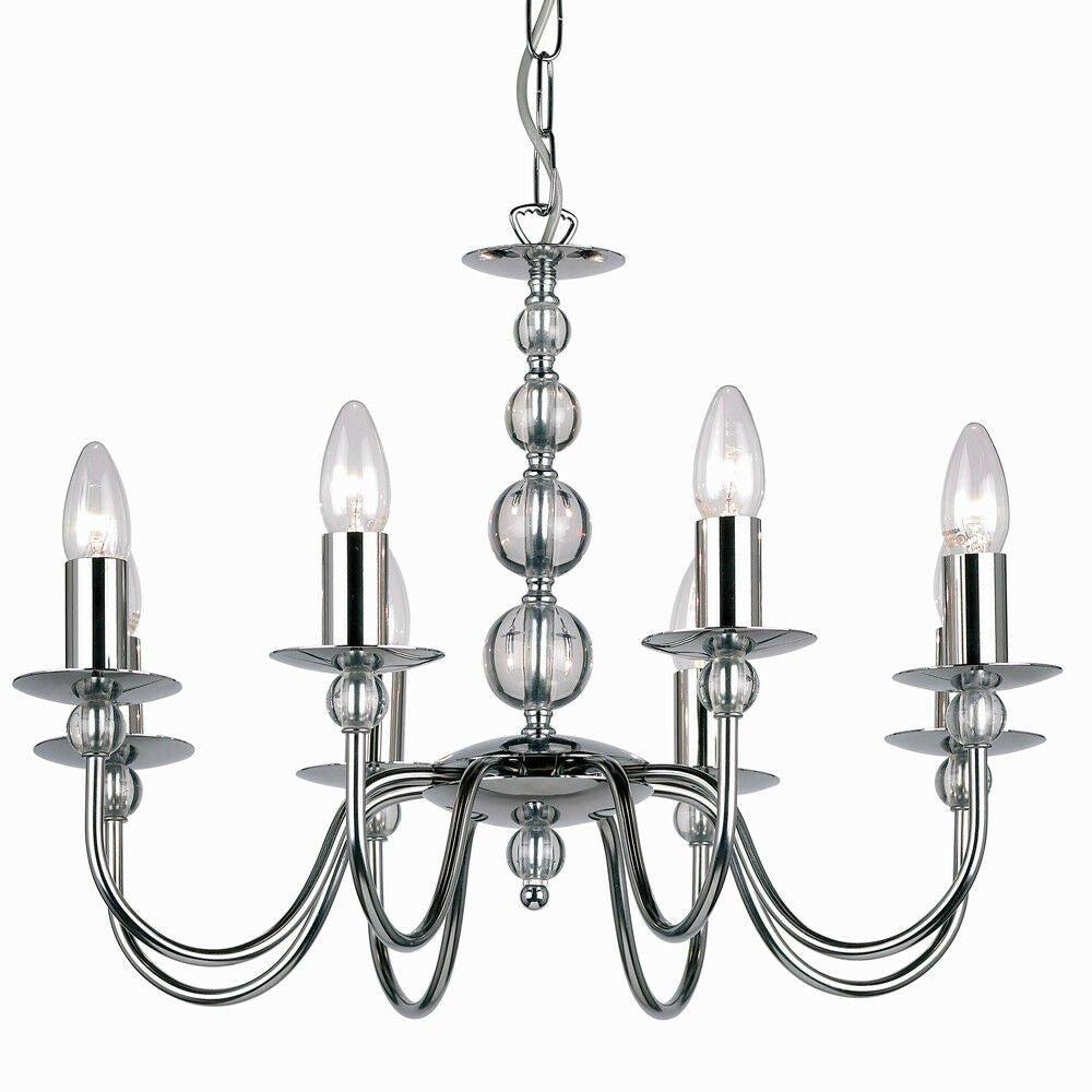 Hanging Flush Ceiling Pendant 8 Light CHROME & GLASS Chandelier Multi Lamp Bulb