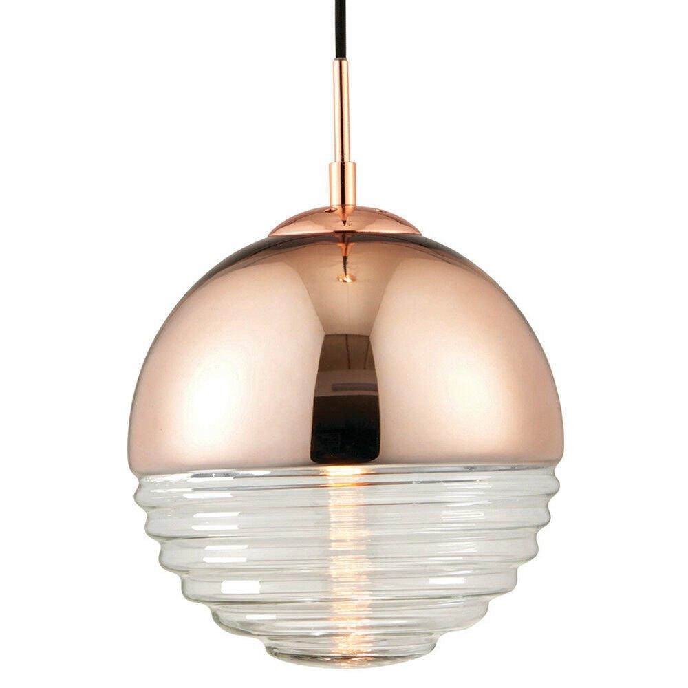 Hanging Ceiling Pendant Light COPPER & RIBBED GLASS Sphere Lamp Bulb Holder