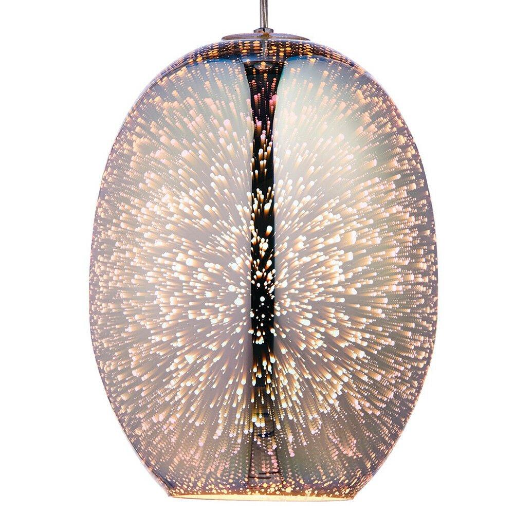 Hanging Ceiling Pendant Light Holographic Effect Glass & Chrome Modern Lamp Bulb