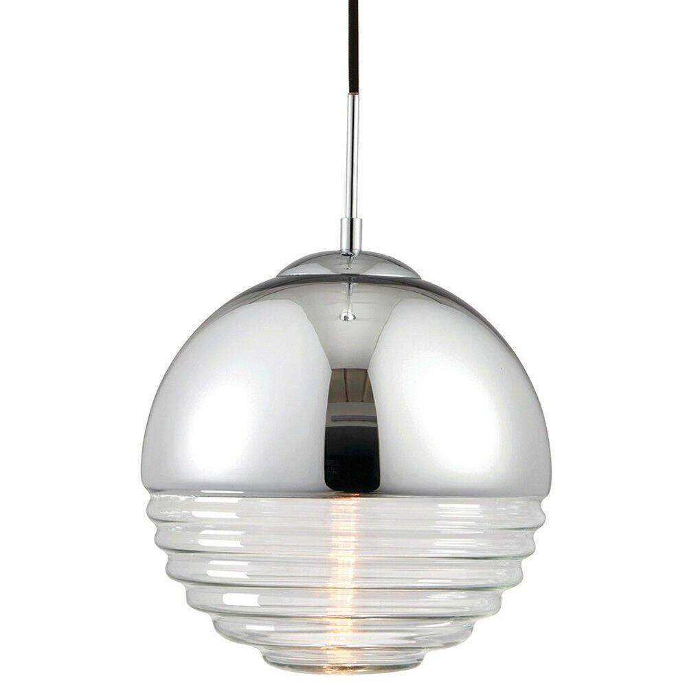 Hanging Ceiling Pendant Light CHROME & RIBBED GLASS Sphere Ball Lamp Bulb Holder