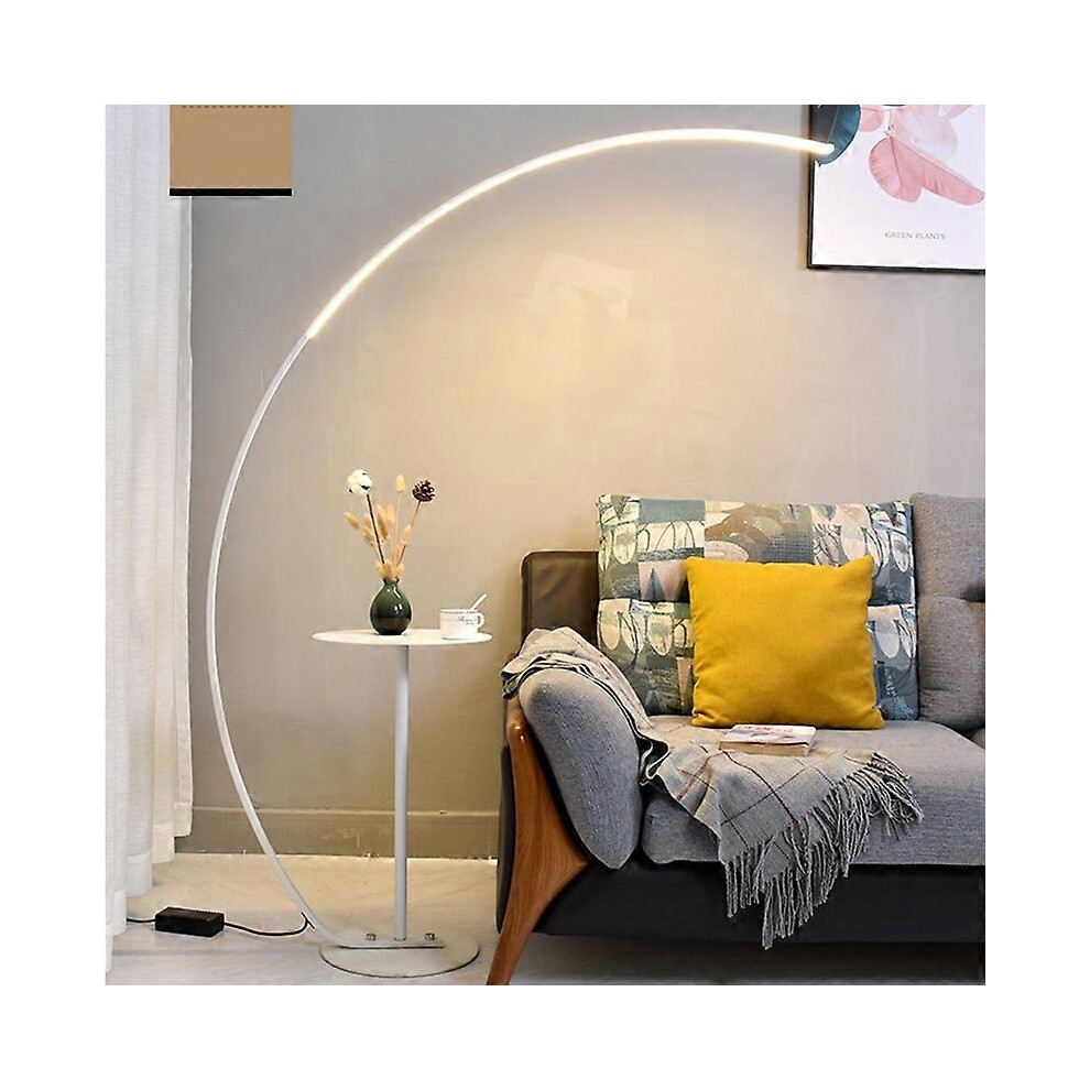 (Dimmable with Remote, White with Table) Mordern Remote Control RGB Colorful LED Floor Lamp with Table Dimmable Corner Fishing Floor Lights for Living
