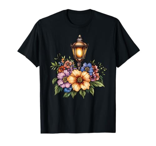 Vintage Lamp with Colorful Flower Cluster and Leaves T-Shirt