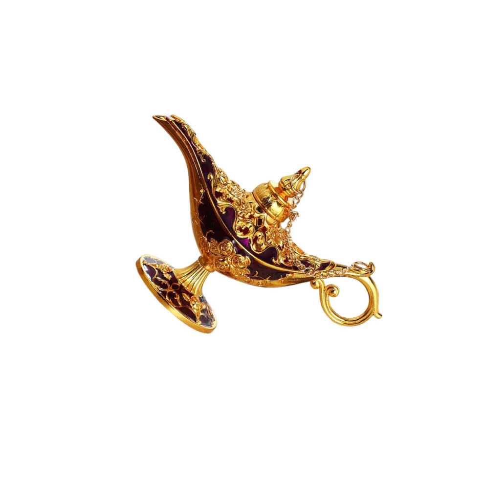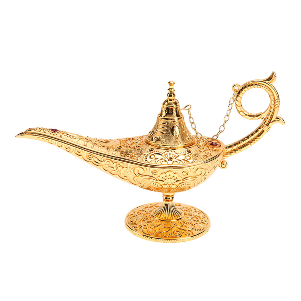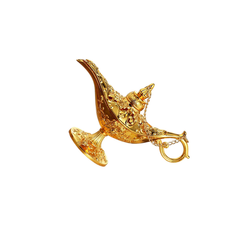 (Gold, One size) Oil Lamp. Aladdin Magic Genie Home Retro Metal Fairy Tale Teapot Oil Lamp