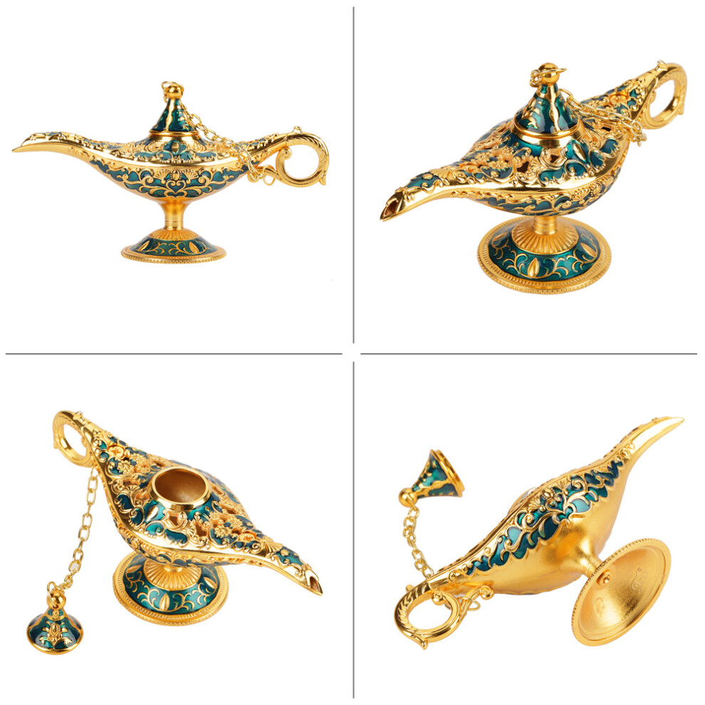 (Blue, One size) Oil Lamp. Aladdin Magic Genie Home Retro Metal Fairy Tale Teapot Oil Lamp