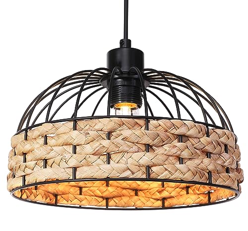 Natural Woven Pendant Lamp Shade, Small Metal & Weave Rope Lamp Shades Ceiling,