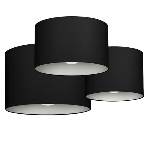 Giggi Set of 3 Black Lamp Shades, 8", 10" & 12" Fabric Light Shade Ceiling, Lampshades for Ceiling Lights, Table and Floor Lamp, Ceiling Shades for Living Room, Bedroom, Kitchen (Black)