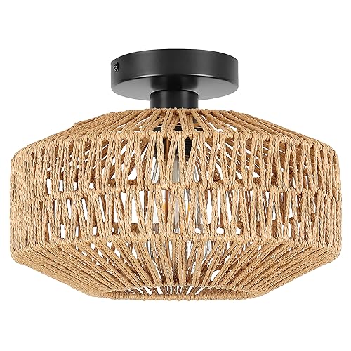 Schindora Boho Rattan Ceiling Lights,Vintage Chandeliers Ceiling Light E27 Rustic Braided Basket Lamp Shades Ceiling for Bedroom Living Room Kitchen Dining Hallway,Without Bulb