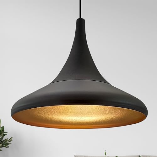 Bamyum Paladin Pendant Light Vintage Metal 35 cm, Lamp Shades Ceiling, Kitchen Lights E27, Industrial Metal Pendant Light Fitting for Living Room and Dining Table, Black