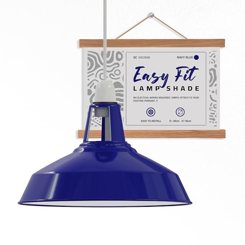 Retro Modern Metal Lamp Shades Ceiling Light Shades,30cm Easy Fit Lampshades, for Vintage Industrial Pendant Lights Bedroom, Kitchen, Bathroom Antique Shade (Navy Blue)