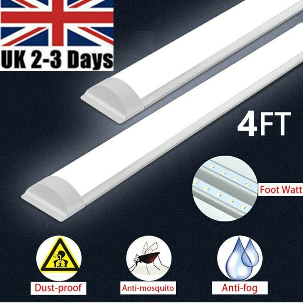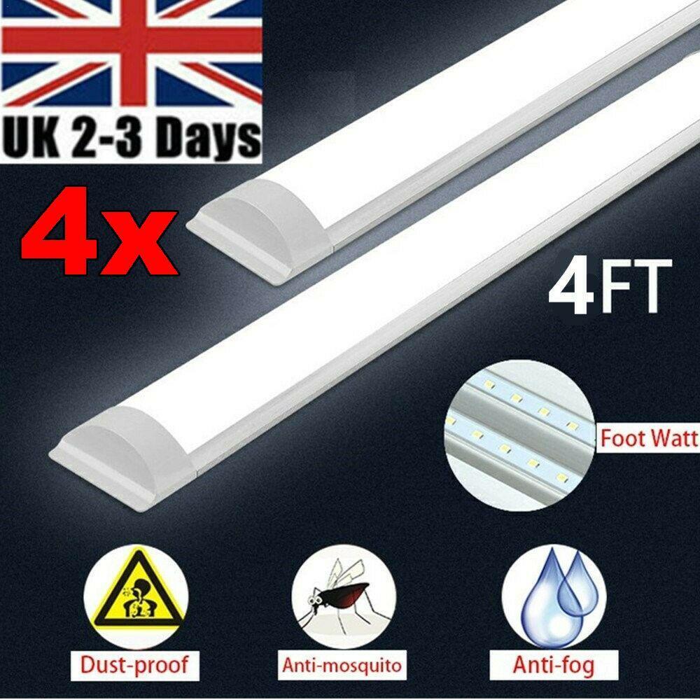 LED Batten Strip Lights 4ft 120cm 6000k Cool White Home Garage Offices Shed Lamp