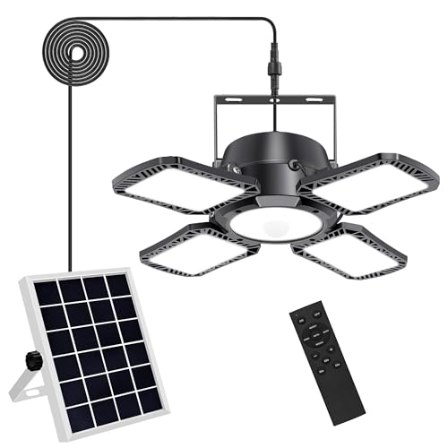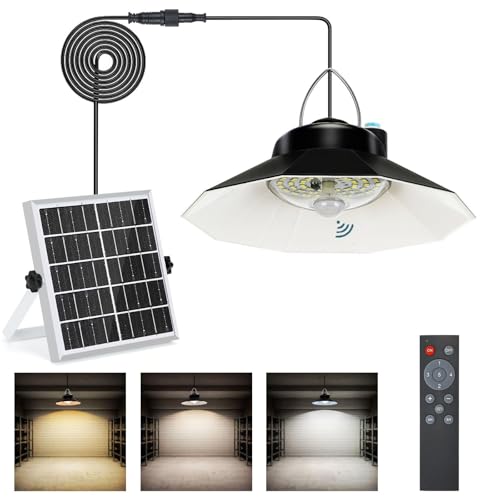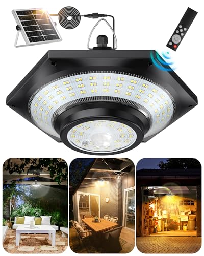 Lampop Solar Shed Lights Indoor with Switch 98 Led Motion Sensor Solar Pendant Light 2700k/4000k/6500k, with Remote 5 Lighting Modes & Timer, Indoor Outdoor Pendant Lamp for Gazebo Garage, Home Gadern