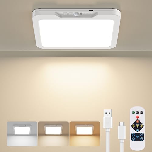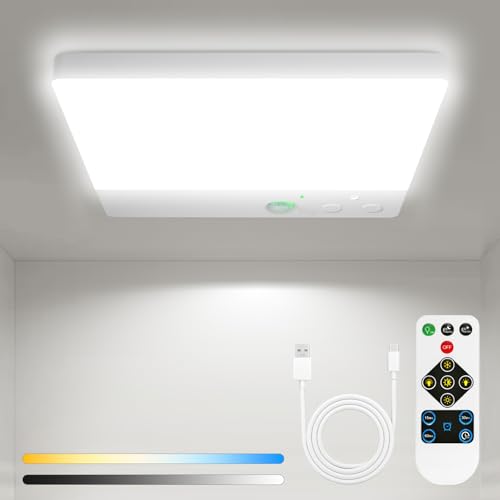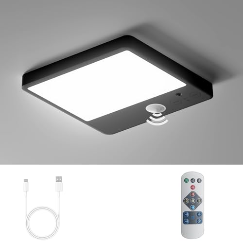 Lysumurl Rechargeable Ceiling Light with Remote, 7500mAh Battery Operated LED Ceiling Lamp Motion Sensor, 3 Colour Temperatures, Magnetic Wireless Mount Shower Light for Shed Loft Garage Hallway