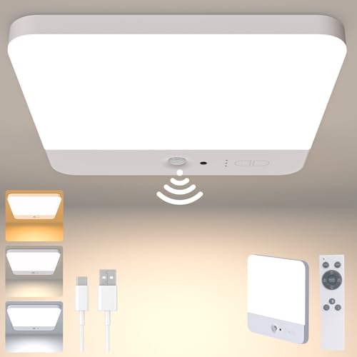 LED Rechargeable Ceiling Light, Battery Operated Motion Sensor Lights Indoor Wireless, Battery Powered Wall Lamp for Bath Shed Porch Stairs Garage, 3 Color Temperatures, Magnetic, Remote Control