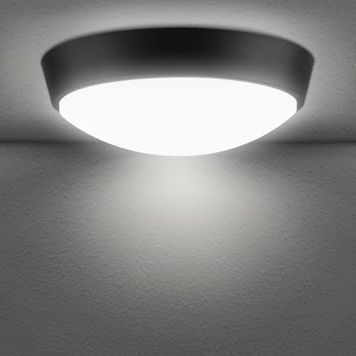 18W LED 4000K IP65 Circular Wall Ceiling Mounted Round Dome Bulkhead Light Fitting lamp for Indoor, Outdoor, Bedroom, Bath, Hallway, Corridor, Utility, Garden, Shed, Workshop, Porch - Black