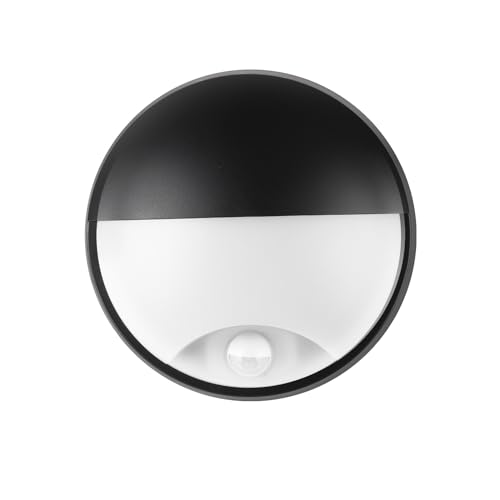 18W LED 4000K IP65 Flush Wall Lamp Semicircle Bulkhead Light Fitting with Motion Sensor PIR for Indoor, Outdoor, Bath, Office, Hallway, Corridor, Utility, Shed, Workshop, Black - Improved Version