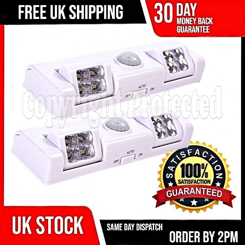 TWO WIRELESS MOTION SENSOR LED NIGHT LIGHT LAMP AUTOMATIC BATTERY SHED CUPBOARD