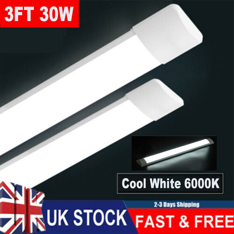 Led Batten Strip Lights 3Ft 90Cm 6000K Cool White Home Garage Office Shed Lamp