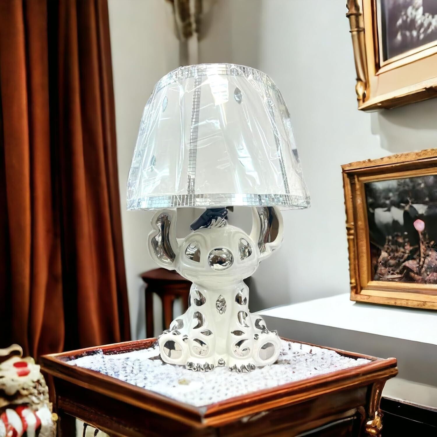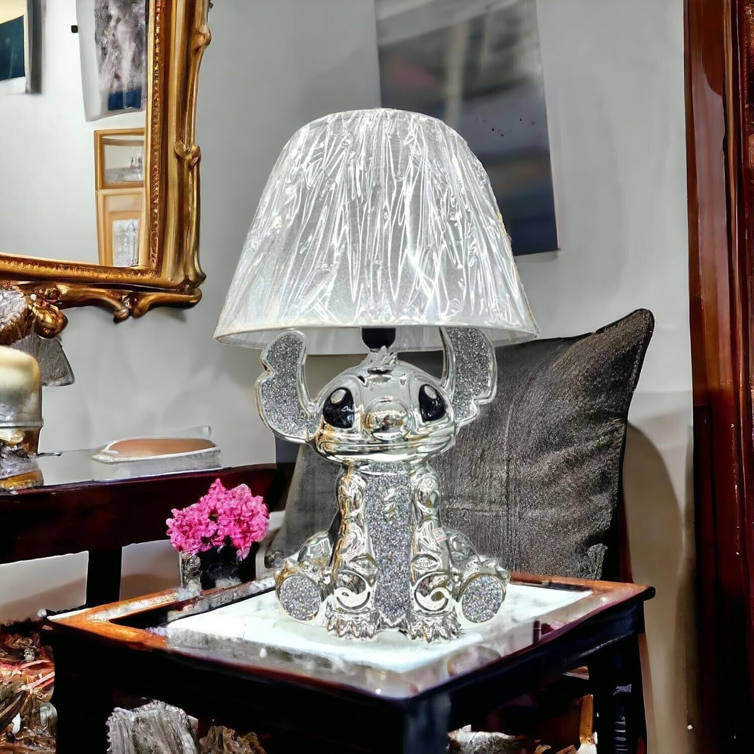 Gold Lilo Stitch Lamp With Shade Crushed Diamond Crystal Mirrore Design