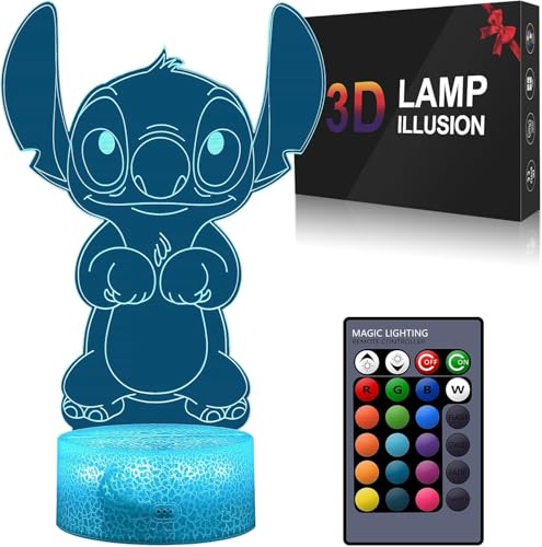 Shenjia Stitch Night Light - 3D LED 16 Color Changing Touch Lamp with Remote Control, Perfect for Girls Room Decoration, Birthday and Holiday Gifts