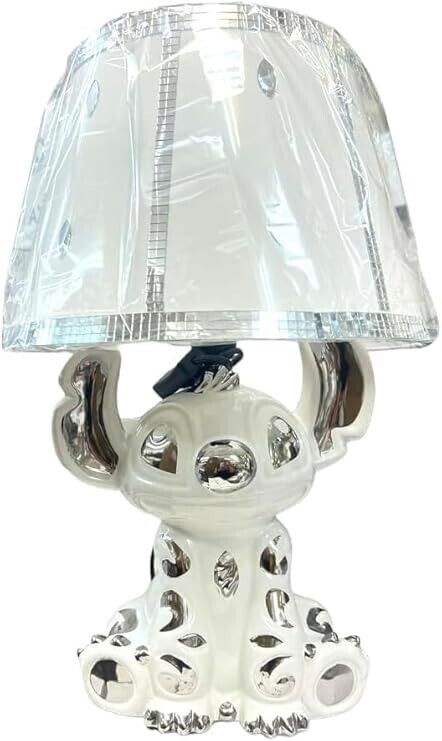 Stitch Table Lamp, Silver Shade, Ceramic White Base, 50cm, Bedside Decoration